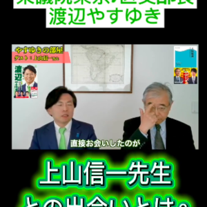 第7回は、大阪維新の会の元政策特別顧問であり、日本維新の会ブレーンである上山信一慶応大学名誉教授をお招きし、2009年当時、渡辺を橋下徹大阪府知事(当時)に紹介したことをきっかけに、渡辺が大阪府特別参与になることとなったエピソードや渡辺が橋下知事に「総理になってくれ」と要請した話などを披露しています!