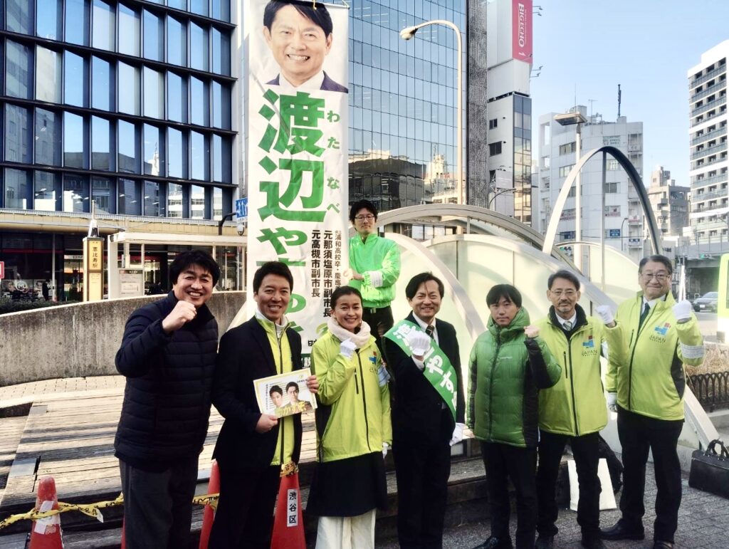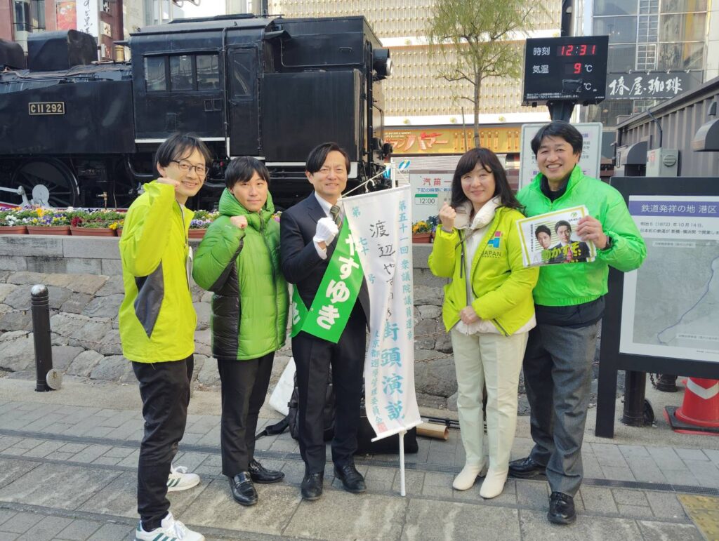 新橋・恵比寿で「第一声」。多くの仲間に支えられ、全力で始動!