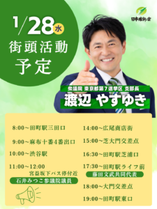 1月27日、新橋駅SL広場、そして恵比寿駅西口ロータリーにて、港区・渋谷区の未来を懸けた「第一声」を上げさせていただきました。