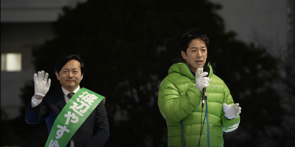 - 田町駅ライフ前にて藤田文武 日本維新の会幹事長/共同代表