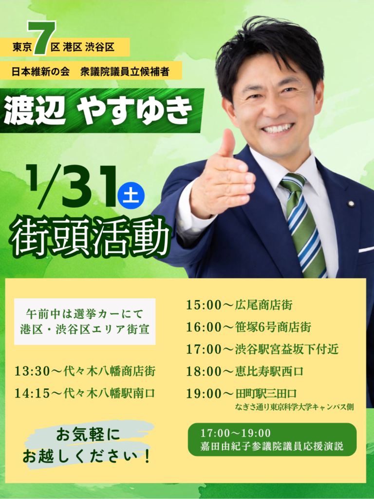 【街宣スケジュール】1月31日(土)街頭活動予定